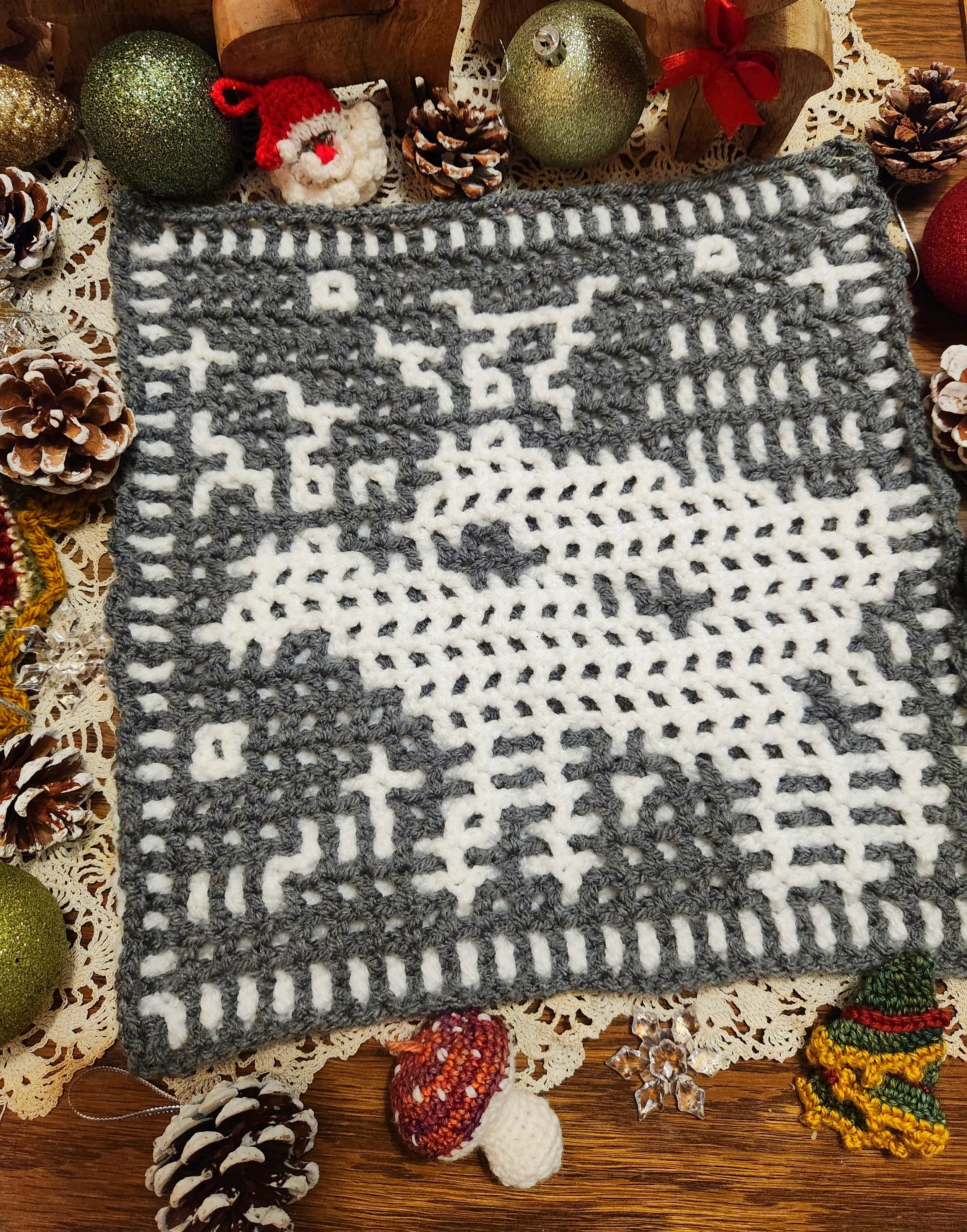 Deer Fornication - Interlocking Crochet Square - Day 12 - 2025 Unhinged Christmas CAL